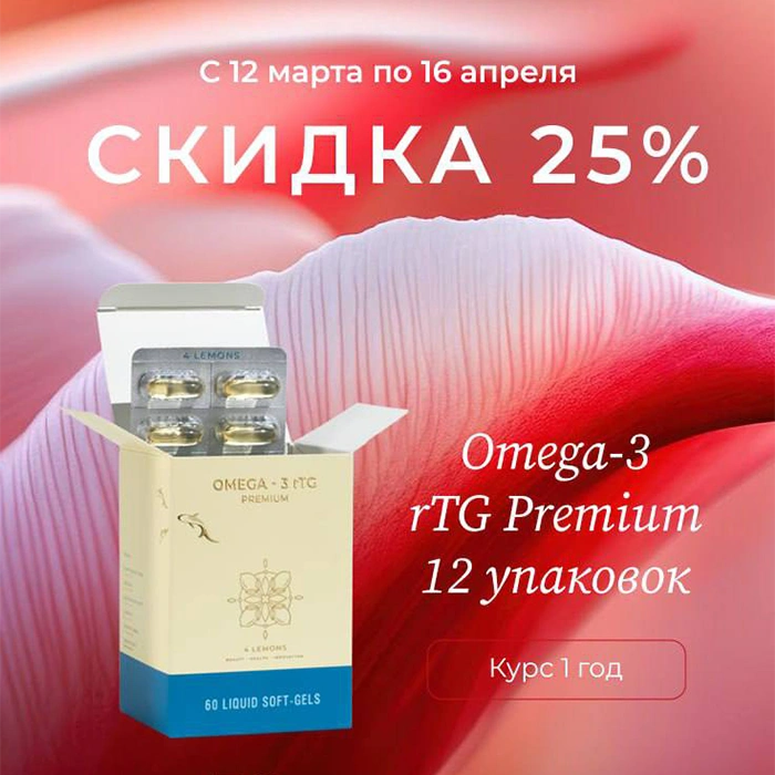 премиальная Омега от 4 Lemons банерОмега-3 rTG 4 Lemons банерДозировка Омега-3 4 Lemons банер